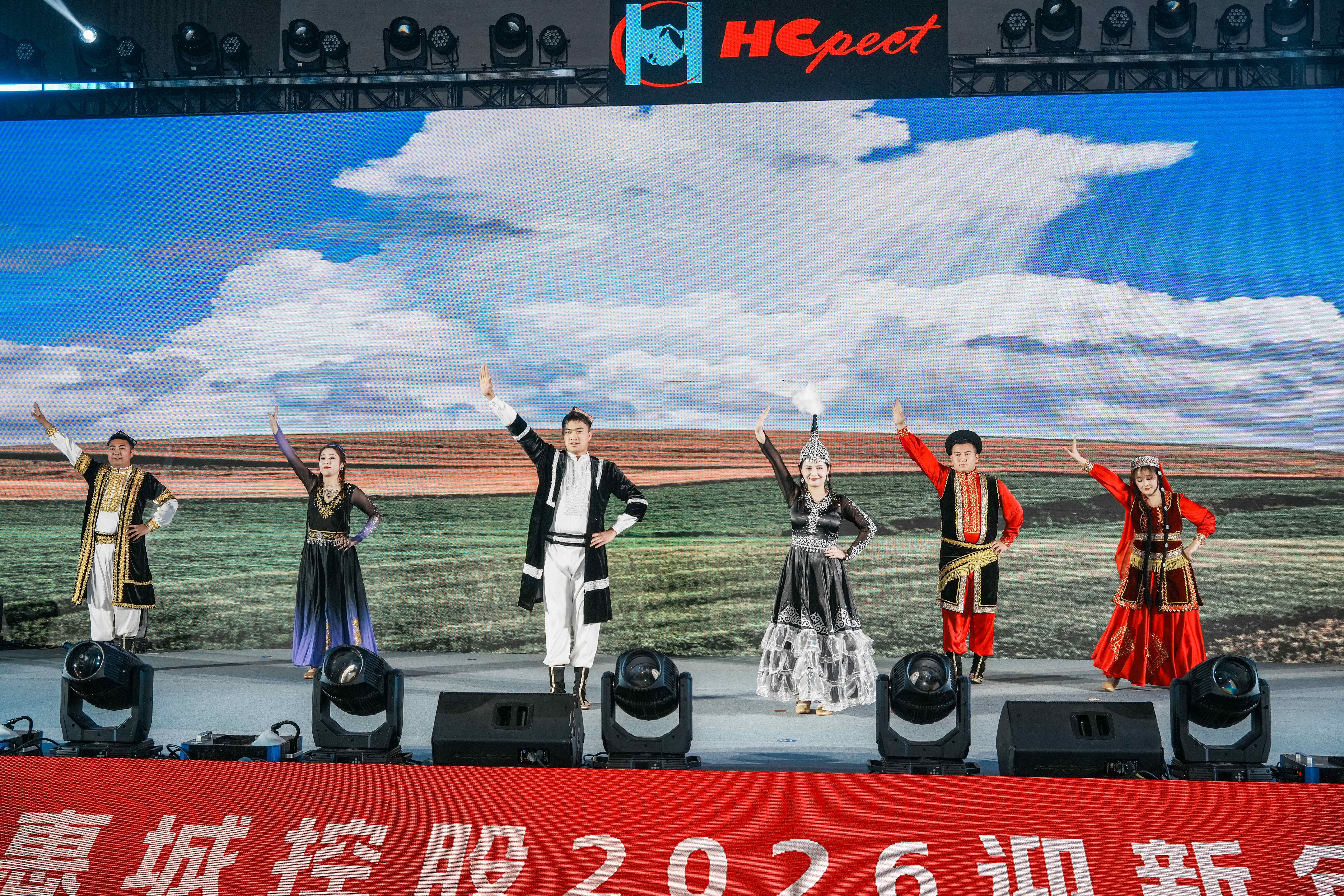 大會下半場迎新聯歡精彩啟幕。員工自編自導的文藝節目輪番上演,涵蓋歌曲、舞蹈、語言類、魔術等多種形式,內容豐富、精彩紛呈,充分展現了惠城人多才多藝、昂揚向上的精神風貌。現場設置互動采訪與幸運抽獎環節,既分享了惠城奮斗故事,又為員工送上新春福利,暖心的互動與驚喜的開獎讓現場氛圍熱烈非凡。晚宴環節,公司領導登臺致祝酒詞,全體家人舉杯共飲、互道祝福,在溫馨祥和的氛圍中感受惠城大家庭的溫暖。