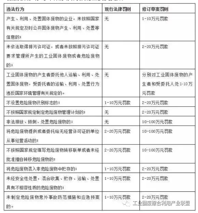 《固廢法》修訂草案涉及罰款的主要變更點: